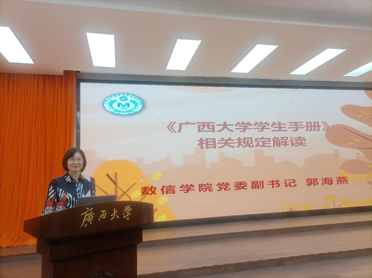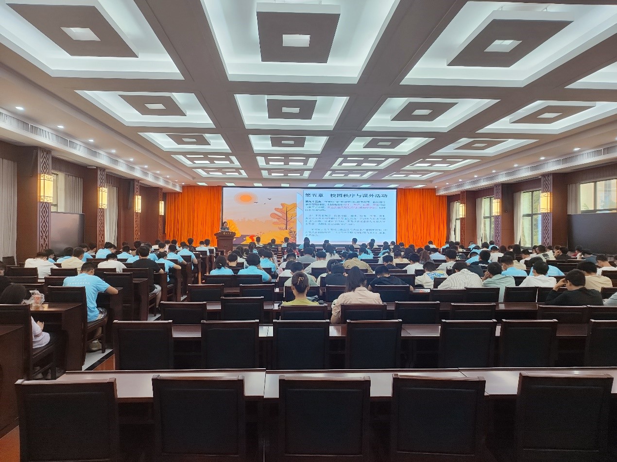郭海燕副书记重点讲解了员工宿舍管理规定、员工考试违规处理办法、课程考勤制度、校园安全规范等太阳成集团tyc9728员工系列规章制度,并结合实际案例强调了遵规守纪的重要性,鼓励同学们严明纪律端正作风,遵守规则促进成长,树立正确的世界观、人生观和价值观。